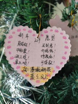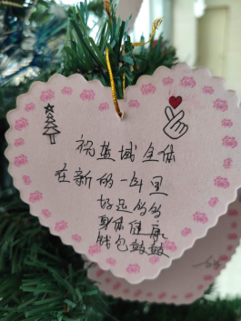 大家把美好的心愿掛在了圣誕樹(shù)上,分享的過(guò)程中還不忘相互調侃一番。